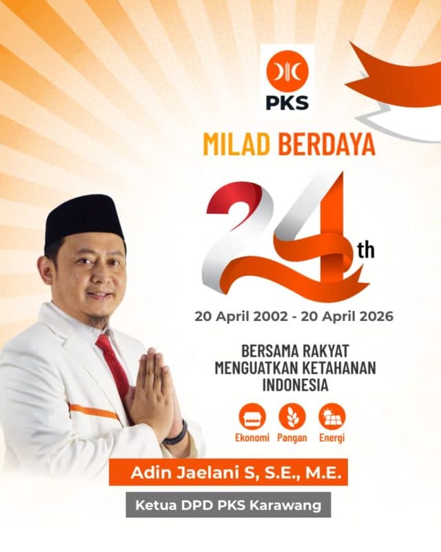 Karawang, 20 April 2026 – Partai Keadilan Sejahtera (PKS) hari ini memperingati Milad ke-24 dengan mengusung tema “Bersama Rakyat Menguatkan Ketahanan Indonesia.” Sejak berdiri pada 20 April 2002, PKS terus berkomitmen menjadi partai yang hadir di tengah masyarakat, memberikan solusi nyata bagi berbagai persoalan bangsa.